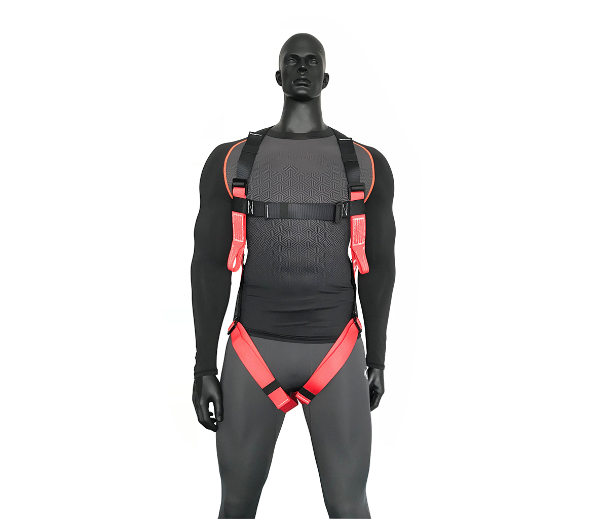 5. Combined belay loop sub pelvic strap positioning reduces risk of throat and facial injury