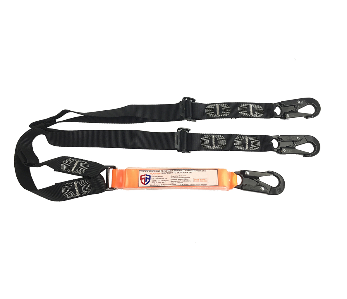 3.).1X orange shock absorber with 2X black leg(Model Code:SLWLA2SNSN),2X drop forged snap hook+2X adjustable buckle with 17.8KN +1X drop forged small d ring
